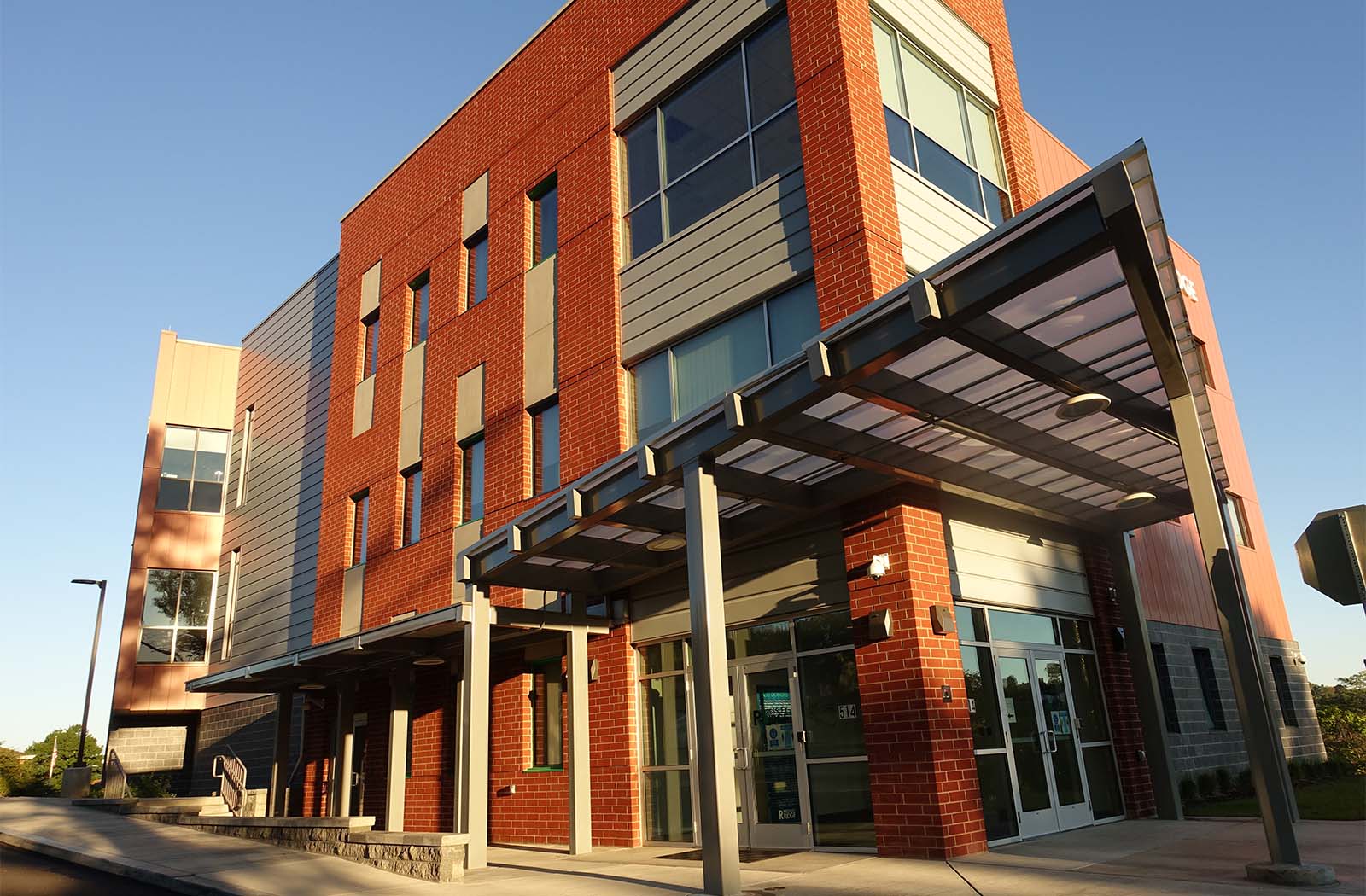 Working with the folks at CEAS, the design team was able to design an exterior canopy solution which marks the entrance and provides an area where folks are protected from the weather.